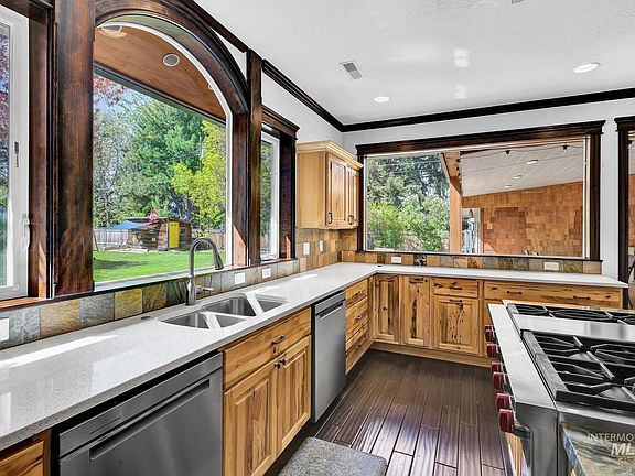 The amazing open kitchen complete with a double oven, two dishwashers, two sinks, gas 6 burner-plus-griddle Wolf range, pantry and a magnificent granite island looks out on the fully fenced and irrigated backyard and the 600 plus square foot deck. With 4 bedrooms and two bathrooms upstairs and a powder room and 5th bedroom/office on the main level you will have space for everything. This updated home sits on a .44-acre lot on a quiet street in a wonderful southeast Boise location close to parks, the greenbelt, BSU and Downtown. Come find an in-city home with serenity and space.