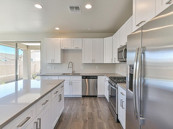 New Build in desirable Highlands Ranch with a 5 CAR GARAGE.! Home features 4bd/2 bath/5 car garage. Open spacious floorplan w/great room design concept. Kitchen boasts quartz counters, solid wood shaker style cabinetry including soft close doors & drawers w/full extension slides. Generous island w/bar area to seat 3 plus extra storage underneath. Large Master w/dual raised height vanity beautiful custom tile walk-in shower, private water closet & spacious walk in closet. Master and guest bedrooms include ceiling fans. Guest bath has raised height vanity and custom tile tub surrounds. Laundry room is situated for full size stacked washer/ & dryer to afford space for quartz counter folding area and large pantry storage cabinet. CONTINUED