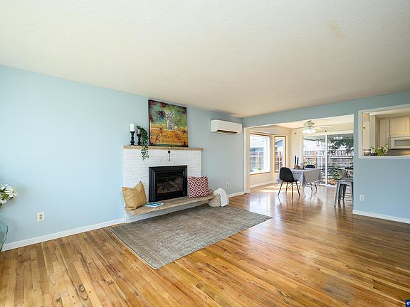 Charming Home in Woodburn Senior Estates. 55+ Community Living with wonderful amenities, including discounted golf, pool & hot tub, exercise room, library, pickleball, billiards room, onsite restaurant (open to public), plus optional RV parking for rent. 2 bedrooms, 1 bathroom, and an extra room behind garage that can be used for office/studio/craft room, etc. New roof, remodeled bathroom and kitchen, fireplace updated to gas, new expanded 2 car driveway. Ductless heat pump with air conditioning.