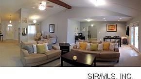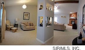 Spacious, MOVE IN READY, 3/4 brick Ranch. Inviting Open floor plan, Vaulted ceilings, beautiful floor to ceiling brick fireplace, recessed lighting & nice curio cabinet in family room. Kitchen features some glass cabinet doors, newer ceramic flooring & Stainless Steel appliances (all included). Master Bedroom has large walk-in closet & Master bath w/ Jacuzzi tub, separate oversized shower w/ ceramic surround & crown molding. New windows 08. New roof & gutters 05. A/C & water heater 07. Enjoy the seclusion of the private backyard that backs up to an open farm land from the covered deck. Nice landscaping too.