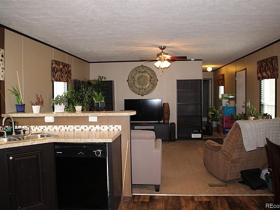 Grab this great home for $135000. This 3 bedroom 2 bath in Country Vista MHP is ready for you to move into. Close to the Denver Metro Area, King Soopers and DIA. Open floor plan with a large kitchen with Refrigerator, gas stove, dishwasher and microwave. Plenty of cabinets for storage. Laundry room has a wash sink and washer and dryer. Primary bedroom has a 5 piece en-suite and a walk in closet. 2 other bedrooms on the opposite side have a shared bathroom. Large yard with raised garden beds. Central air for the hot summer days. Some of the furniture is included. LOT RENT IS ONLY $500 Close to I-70 for easy access to go anywhere you want. Come see this great home.