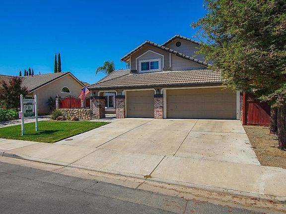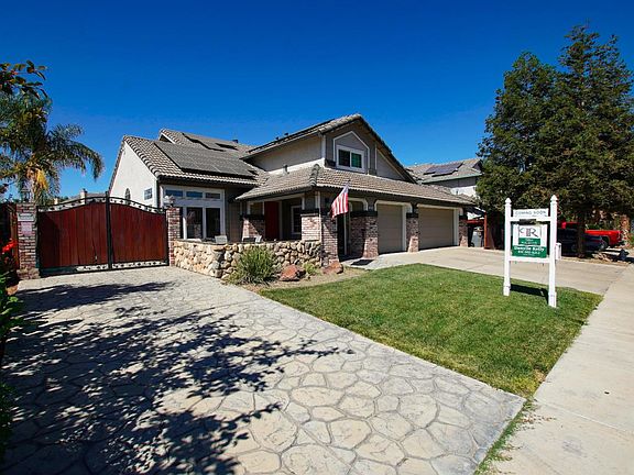 HOME FOR THE HOLIDAYS! Welcome to this stunning, formally a model home! As you walk in, you are greeted with beautiful high ceilings and a warm and welcoming concept.The stairwell is gorgeous for those picture perfect moments.This home not only has 4 bedrooms with one bedroom downstairs, it has an extra office/den room for guests or a hobby room. This home has so many upgrades and updates, from the fire place and sunken tub in primary bedroom, a wet bar,beautiful slate flooring, granite counter tops, solar, to the custom built bar/entertainment area with it's own private door. It does not stop there, this home has a beautiful kidney shaped solar powered pool! Do you have an RV? This home has an extra large concrete stamped space for your RV'S or rec. vehicles! Did I mention Location!?This spectacular home is just two mins from Hwy 152 for an easier commute time, a park nearby, and a huge shopping center for all your needs! Time to open the door to YOUR place called HOME.