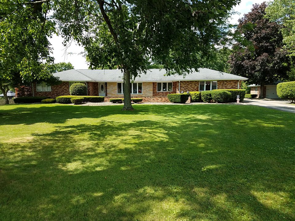 Beautiful 4 bedroom brick ranch home with all rooms on the first floor. Large first floor laundry room, kitchen with eat in area, dining room, living room, and family room. This house has two and a half bathrooms. Two cedar closets in master bedroom and cedar in foyer closet. Heated attached 2.5 car garage and a 1.5 car detached garage. Two driveway entrances that form a large U shape at the garages. Enormous backyard with 1.85 acres total. Huge unfinished basement that is 12 block high. Big front porch.