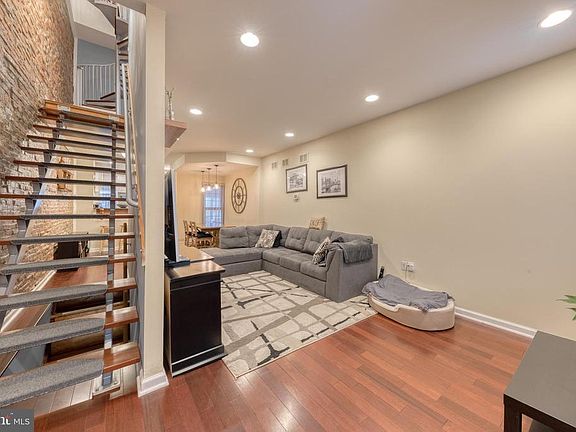 Charming brick row home in the heart of Federal Hill and only a couple blocks from Riverside Park! Lovely front porch you can enjoy all year round as well as 2 decks to take in the city views. Beautiful hardwood floors and recessed lighting throughout. 1st floor has a great open floor plan with exposed brick wall, cozy dining area adjacent to the kitchen and small breakfast bar. Skeleton staircase to 2nd level master bedroom and large master bathroom with large jetted soaking tub/shower combination. Open area which can be used in many different ways, great for office space with exposed brick. Exterior door leading to deck and nice sitting area. Spiral staircase to the 3rd level, 2nd bedroom and full attached bathroom with stand-up shower and ceramic tile. Exterior door to deck off the 3rd floor providing great views of the city. Finished basement with potential 3rd bedroom, full bathroom, laundry and storage space. Small porch off the kitchen, perfect for grilling and provides direct access to the PARKING PAD in the rear!