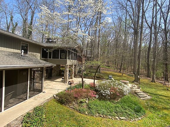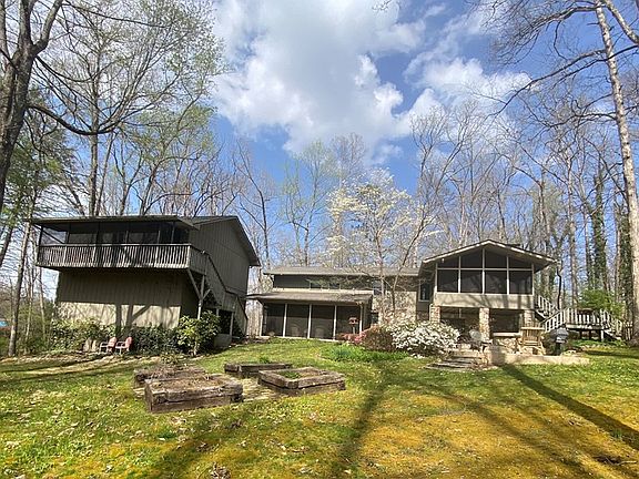 Spacious Home in secluded Blalock Woods For Sale. This mountain stone and cedar home sits on 2.86 wooded acres and features 4 bedrooms + extra room for home office, craft room or guest bedroom, 3 tiled bathrooms, oversized living room & bedrooms have solid wood flooring from Tennessee Flooring, the dining room and kitchen open onto a large screened porch overlooking the woods rich with flowers, birds and vegetation. The kitchen has been remodeled with new kitchen cabinets and granite counter tops. The first level offers a large carpet & tiled Family room with gas stone fireplace, wet bar, and game room/play area that opens onto a large patio with gas stone firepit and gas grill. The oversized tiled laundry room has plenty of storage area, a laundry sink and room for a refrigerator. The master bedroom located on this level has custom cabinetry for storage, seating area with built in TV, large walk-in closet and large tiled master bath with 6 foot jacuzzi tube and walk-in shower with double shower heads. A spacious third screened porch is accessed from the master bedroom. The large 2 car garage has lots of built in storage and a large solid workbench with tons of storage for tools. The spacious 600 sq ft Efficiency Apartment located over the garage area features a full size kitchen, large bathroom with walk-in shower, large walk in closet with plenty of shelves for storage and a stacked washed/dryer. This is a perfect bonus living space for visiting guests, an office or short term rentals. Home & apartment have ceiling fans in all rooms. New roof was installed on both buildings in 2022