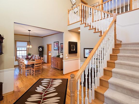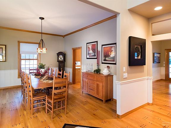 Beautiful custom home featuring elegant foyer & spindle staircase. Solid oak pegged floors. River rock fireplace & wet bar in living room. Formal dining room plus eat-in kitchen. Main-level master suite with spacious walk in shower. Private office. Large den with propane stove, built-ins, and attached bath. 2 upstairs guest suites. Den can be fourth bedroom suite. Neighbor permission to ride horses to public lands.