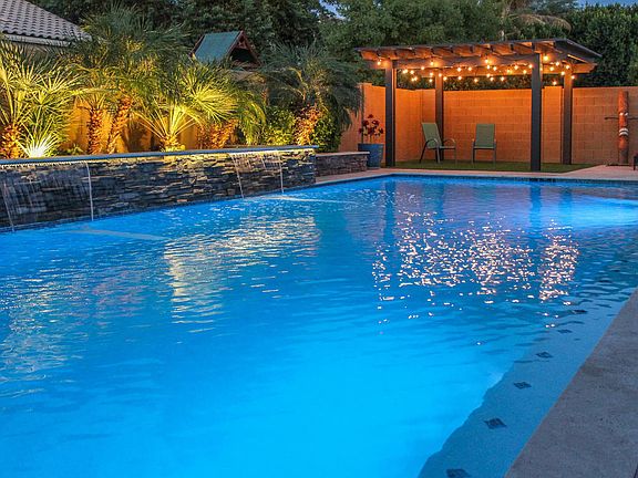 Pride of ownership shows throughout this beautiful one-owner home offering 4 bedrooms & 2.5 baths in 2677 SqFt. Great room floor plan with formal dining & eat-in kitchen. The gourmet kitchen features dark maple staggered cabinetry w/crown molding, granite counters, mosaic tile backsplash, gas cooktop w/stainless hood, double ovens, island w/breakfast bar & 2 pantries. Sliding doors lead out to a sparkling pool with stacked stone accents, water features, travertine decking, pergola-covered lounging area with artificial turf, built-in BBQ island & covered patio w/slate flooring. The master bedroom also has private access to the backyard & a lovely bay window sitting area and en-suite bath w/privacy door, dual vanities, soaking tub, stand-alone shower & walk-in closet. Other features include* double sinks in hall bath, walk-in closet in 1 secondary bedroom, 3 car split garage with service door, epoxy floor & workbench, laundry cabinets, surround sound, 8' doors, 8' side gate, 2-tone paint & much more! See today!