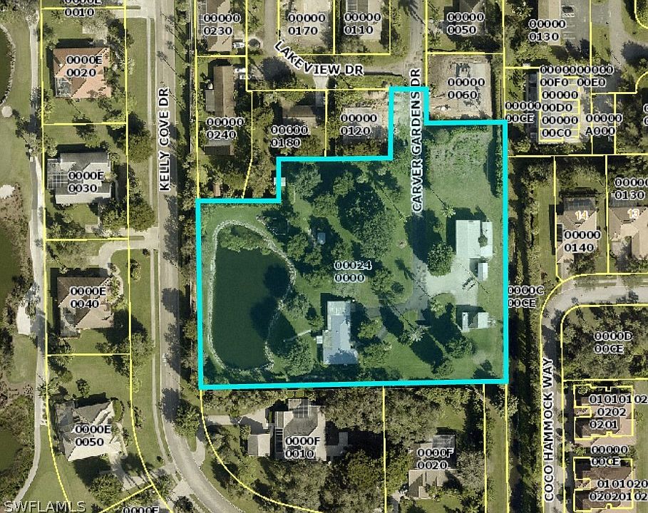 This Stunning property with 3.33 acres is Agricultural (AG-2) zoned and has a scenic lake behind the residence. AG-2 taxes are much lower than residential zoning (Great buy and hold!)Part of the property has been zoned for commercial use. This home was previously listed at 1.2 million dollars but took in 2ft of water with Hurricane Ian. Tile floor, all windows with the exception of one, structure, roof, etc. all intact! This is an amazing opportunity for investors or anyone looking to have exclusive acreage just minutes from Fort Myers beach and Sanibel Island. The home was built in 1964 and had never flooded until Hurricane Ian. This property borders the Kelly Greens Golf Course and also The Coco Bay community. With such little inventory and acreage that you don't find near the beach, this is the chance to own something very special! Don't wait to have a true GEM!