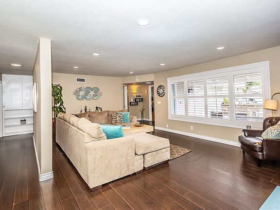 Welcome to this single-story home close to Alta Vista Country Club in Placentia. Driving up to the home you will notice the oversized paver driveway and enclosed front courtyard. Entering the home you are greeted by a nice and open living room with great natural lighting, cozy fireplace with a two-hundred-year-old reclaimed wood mantel, recessed lighting, laminate flooring, which all flow nicely into the dining and kitchen area. The open kitchen and dining area make this a great area for entertaining. The kitchen features premium quartz counters, stainless steel appliances, custom cabinets, glass tile backsplash, and recessed lighting. The dining area features a buffet with quartz counters, wine fridge, trendy chandelier, and a glass slider leading out to the backyard. The backyard is set up to continue your entertaining. The backyard features a built-in gas firepit, grass area with jungle gym, and nice pavers throughout. The master bedroom features newer carpet, mirrored closet doors, and recessed lighting. The master bathroom features newer vanity and enclosed walk-in shower and toilet. The additional three bedrooms feature newer carpet and mirrored closet doors. The full guest bathroom hosts dual sinks, vanity with acacia butcher block countertop, and tile flooring. Two car garage with direct access, enclosed laundry room with utility sink, and a pull-down ladder to access extra storage space. All within a short distance to award-winning schools, shopping, and restaurants.