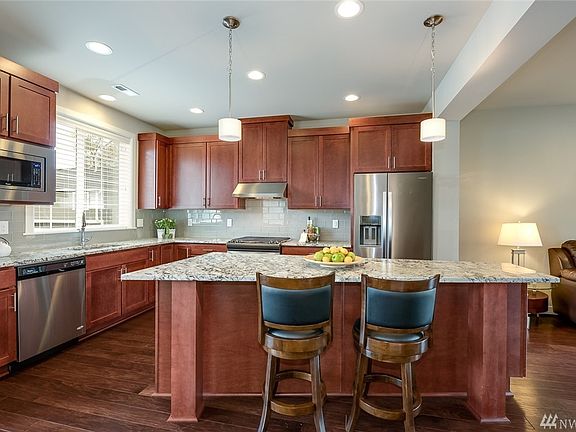 Exciting 4 bedroom townhome offers flexible for modern luxury living and entertaining. Great room concept offers dining room, nook, covered balcony, den & gym. Oversized windows, sunlit rooms & grand kitchen with gas range. Guest suite on main. Master suite offer granite slab vanities & tile-wrapped shower. 2 car garage. Back to open space and next to a park. Community offers several parks. Amazing location only minutes to wine country, SR520 & I405. Awarding winning LW schools. Home sweet home!