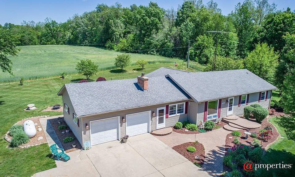 Looking for a private, peaceful setting? This beautifully landscaped 4 bedroom, 2 full, 2 half bath ranch is situated on 2 acres, offers over 2,800 sq. ft. of finished living space and is move-in ready. The views are spectacular! The 22' x 23' family room offers panoramic views and opens to the fenced in back yard complete with patio and waterfall. The spacious living room with fireplace and kitchen with eat-in area are perfect for entertaining. The 40' x 30' pole barn has heat, water and a 20' x 40' lean-to which adds to the appeal of this property. Could be rented as storage for additional income. This is country living at it's best! Located minutes from wineries, breweries, Lake Michigan and all Michigan's great southwest has to offer. Call today!