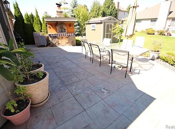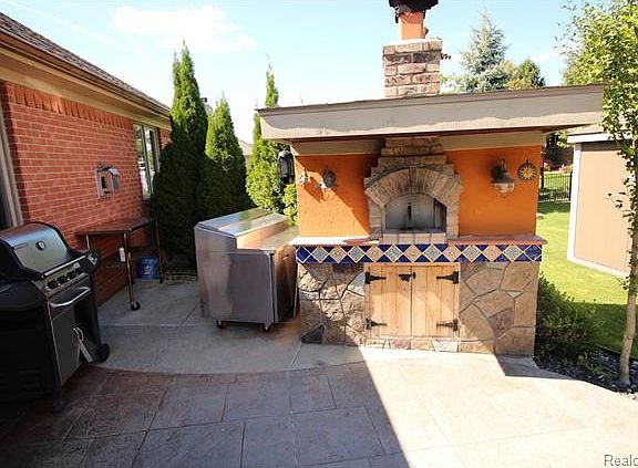 Custom full brick ranch. 3 bedrooms plus library - w/octagon ceiling. Cathedral great room ceiling. Costume wood burning pizza oven w/beautiful stamped concrete patio and a spacious shed in the back. Wood floors in bedrooms . 9 foot ceilings. Custom trim. Gas fireplace . Master suite with beautiful pan ceilings with a big walk in closet. Finished basement w/ half bath, kitchen, and plenty of storage space.