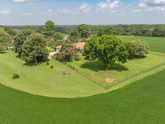 Southern Charm beckons from this well-sited, all-brick ranch home. Full windowed sunroom w/ stunning views of farmland on 3 sides. 2 acres of mature & new landscaping cared for by Master Gardeners. Oak hardwood flooring throughout, tile in baths, laundry, & sunroom. All electric kitchen, stainless appliances, double oven, new dishwasher. 2 stone fireplaces 1 w/ gas logs. Lighted closets w/ custom shelving for ample storage. Large basement w/ separate access & rough-in awaits your finishing. Oversized 2 car garage w/ multiple windows. Well w/ water, lightening arrestor system, exterior camera security system, roof 2015. Black-clad fencing surrounds back area of nearly 1 acre. Marina 2 mi away