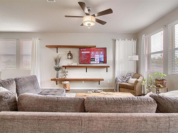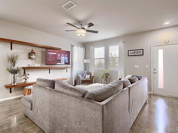 You don't want to miss this amazing 4 bed, 3 bath townhome for under $400K. This home has been well taken care of by the original owners and they have added so many nice touches such as a whole house humidifier, ceiling fans in 2 of the bedrooms and the living room, custom master vanity and backsplash, new kitchen backsplash and kitchen drawer and cabinet handles. This home looks better than the model home! It's a corner unit with a great patio for entertaining guests or just hanging out. The location is central to everything Denver has to offer. DIA is an easy 10 mile drive, while Union Station is 15 miles. You have a light rail station that is 1 mile away and a bus stop within a block. I-70 takes you into the mountains for skiing and hiking. Construction on a new 5 acre park is starting very soon and there are plenty of dining and shopping options in Green Valley Ranch along with rumors of a new Costco coming very soon as well. This is a growing neighborhood with plenty of new and exciting businesses and opportunities coming in the future. You don't want to miss this making this your new home!