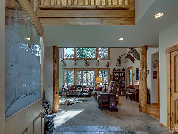 Nestled in the Pines! Custom-built craftsmanship at its best. Douglas Fir handcrafted logs throughout give this neighborhood diamond a real NW Lodge feel. Two-story with Master on the main, two bedrooms up, with a huge bonus room. The massive king truss log entry welcomes you in through beautiful knotty alder doors into the Great Room. The feeling of having the outdoors in has been achieved with fantastic windows positioned perfectly throughout the entire home. The Kitchen is a masterpiece!