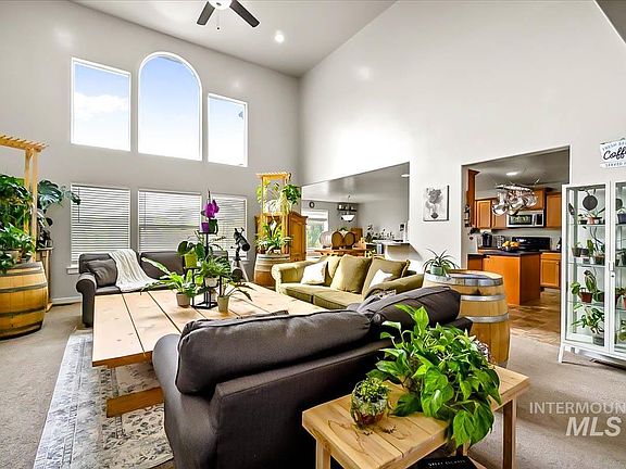 This property combines the charm of rural Idaho living with the luxury and comfort of a spacious 3716 square ft, 7-bedroom home, with an option for an office and bonus room. It's a wine-enthusiast dream, with a great patio, custom fire pit and seating to enjoy your own private vineyard. Your very own personal vineyard adds a unique touch, making it an ideal property for those who appreciate both the beauty of the outdoors and the possibility of making your own wine. Includes a three car garage with a 80 gallon, 5 horsepower compressor with three conveniently situated ports with reels. This property has investment opportunity for the short term rental market, if you choose. Each room is set up with private code entrance and automated lights. Please inquire previous earnings. This house has the ability to pay itself off while you live in it.