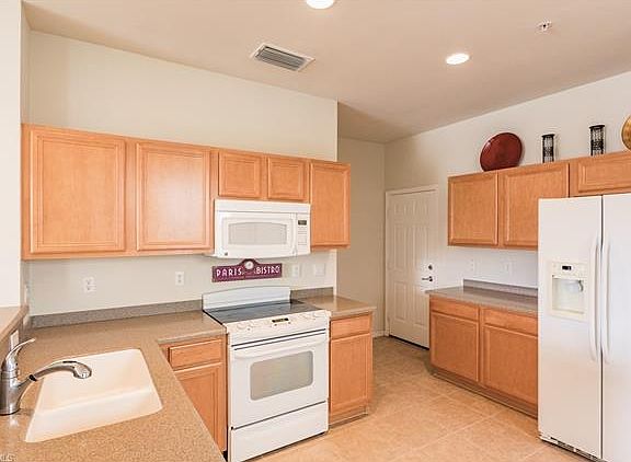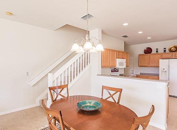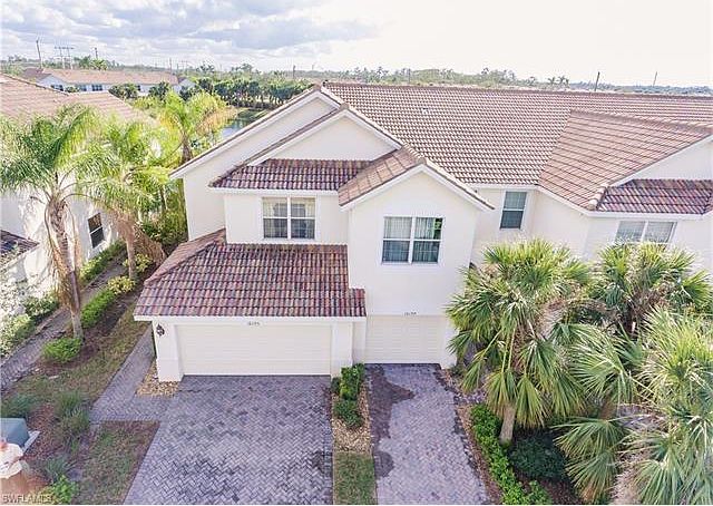 Rarely available end-unit townhome at Verona Pointe offering 3 bedrooms, 2.5 bathrooms, and a 2 car garage! This beautiful home has been gently used and immaculately maintained by the original owner. Open floor plan with a clean and spacious kitchen that includes a cozy eat-in area, and opens up directly into the dining and living area, making it perfect to entertain. The master bedroom features high cathedral ceilings, lovely views of the lake from the second floor and a large walk-in closet. The master bathroom includes dual sinks and a oversized shower. Two additional bedrooms are also located upstairs and share one full bathroom with a tub. Laundry is also located on the second floor. The screened lanai provides tranquil views of the lake with desirable Southern exposure. Walking distance to the community pool and spa. Verona Pointe is a gated community in North Naples, offering A rated schools and close to shopping, dining, parks and the gorgeous Naples beaches. Be sure to check out the 3D virtual tour to truly experience this condo and it's amazing views and features. This home is offered turnkey furnished, just bring your toothbrush!