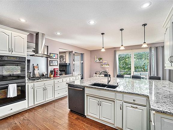 This Kitchen is to Die For! If you love to entertain, bake and/or cook this is the home for you! Spacious open floor plan with newer engineered wood floors that flow through living room with fireplace and wall of windows, pass the butler's pantry on the way, and into the most amazing kitchen! Bright white cabinets, an Enormous granite kitchen island with tons of storage below, well-organized walk-in pantry, built-in spice cabinet, appliances include double ovens, gas range with hood, and banquette breakfast area. Overflow your entertaining on to the Newer expansive trex deck. Main level also includes a private office and formal dining room. Enjoy relaxing after a long day in your inviting primary suite. Jump in the huge new shower or pour some bubbles into your new soaker tub in your newly remodeled bathroom. This suite also includes huge closet space and a 2nd level laundry room. Finish your day in the finished basement and watch a game in your media area with bar. There is also a full bath and 5th bonus bedroom down here too. This homeowner has kept up with the maintenance and updates so you don't have to much and you can just enjoy. Newer carpet, Newer HVAC, paint, and more. Fantastic location for shopping, restaurants, schools, and neighborhood amenities. Welcome Home!