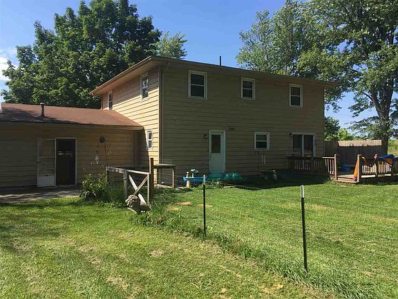 Great location SW of Plymouth on 11th Road; this 5 bedroom house offers 2 full bathrooms; full basement; front porch plus a deck and patio; 3 acres of property; nice pole barn with concrete and electric service; $149,000.