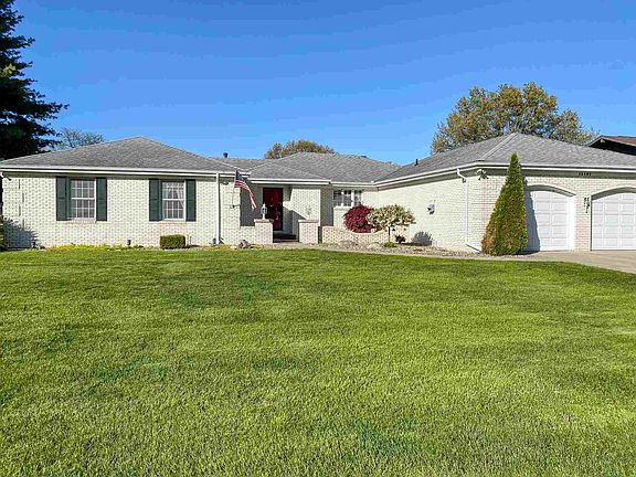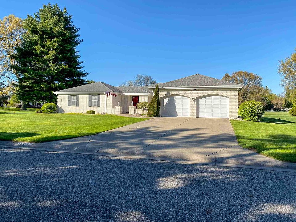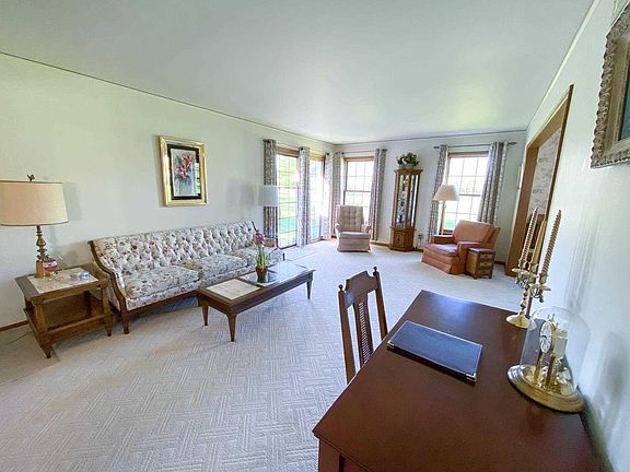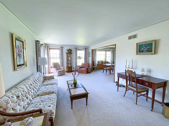Golfer's delight. Enjoy your morning coffee on your patio watching the golfers tee off. A large foyer with 2 closets opens to the formal living room which has a sliding door to the patio. Offers a formal dining room. The family room has a floor to ceiling fireplace plus the sliding door to the 3 season sunroom. The back hall is just off the kitchen leading to a half bath, the laundry room, stairs to the basement and the garage. The hall to the suite with a private bathroom plus 2 other bedrooms and a full bath is off the foyer. The property is in an estate, is dated and is having an estate sale June 29,30 and July 1.