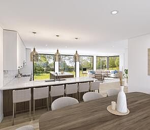 3314 sq ft , heated pool with auto cover , 1.29 acres , 5 bed 3.5 bath , screen porch and 2 gathering rooms .dramatic sweeping vista views of surrounding woods from every area of home . Located on private road , STR ready and 1 mile from townline beach . non buildable lot across street also available for sale .