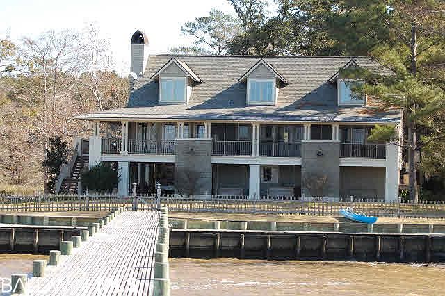 The best on Mobile Bay! Designed by Mac Walcott. Renovated by Pittman & Brown-2003. Ultimate design. 91' on Bay and over 200' on Baileys Creek. 3800SF plus over 1000SF of open and screened porches. Top of the line kitchen, generator, indoor and out door fireplaces, 4BR 4.5BA. Wharf with boat lift plus dock and boat lift on Baileys Creek too. This one has it ALL!