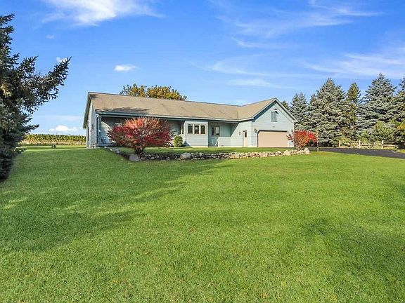 Beautiful 3 bed/2.5 bath, 2,237 square foot ranch located in the heart of Old Mission peninsula! This elegant home is on just under an acre of gorgeous property, with a vineyard abutting the backyard. A private countryside setting showcases a comfy porch in front and spacious deck in back. Elegant features abound in this open-floor home, which features rich wood floors, a gas stove, a modern, tiled, island kitchen, dining room with a view of the vineyard, and a cozy breakfast nook. The master suite features a walk-in closet, double-sink, and separate tub and shower in the stylish bath. The second and third bedrooms share beautiful hickory floors with a nice guest bath in between. A large unfinished basement adds to the spaciousness of this well designed home. You'll want to see this jewel of a countryside property!