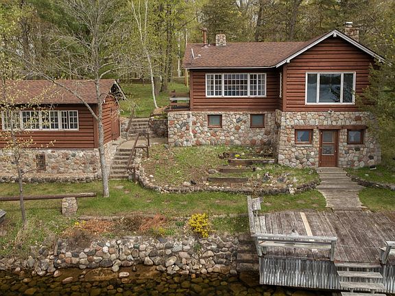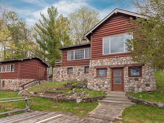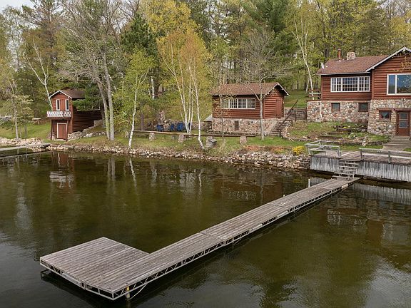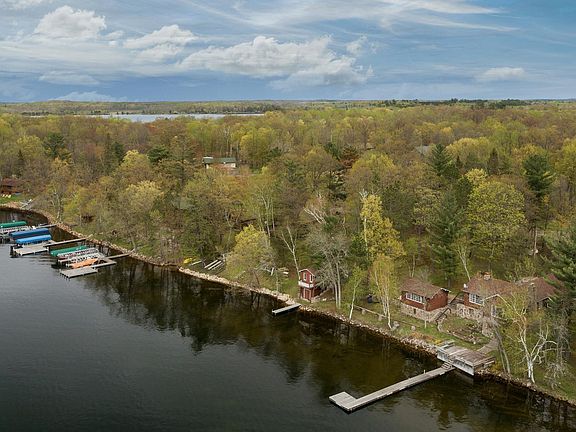 Legacy property on prestigious Brighton Point Road of Bay Lake finds this incredible parcel of land including 200' of west facing shoreline with 10 additional lots across the road for a total of 3.2 acres. Set among the towering pines are the nostalgic cabin with stunning lakeside views from the Great Room, wood burning fireplace, two bedrooms and a sun room facing the lake, with the kitchen and dining area just down the steps in the lower level. There are two additional lakeside bunk houses, each with plenty of space for guests, or entertaining with the summer breezes off the lake while watching the beautiful sunsets. This property offers the opportunity to enjoy the nostalgic cabin, which has enjoyed some recent updates, while planning the renovation of the current structures, or looking forward a few years to starting over with your new dream lake home built on one of the most spectacular parcels on Bay Lake. New 3 bedroom septic installed in 2021.