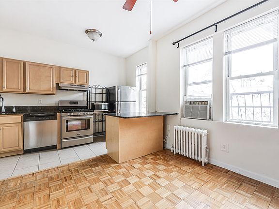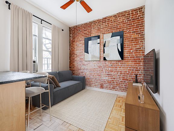 SUN-DRENCHED 1BR IN DOWNTOWN HOBOKEN. This bright and spacious 1 bedroom, 1 bathroom apartment effortlessly combines classic charm with modern convenience. Sunlight floods the open living area, accentuating the gleaming parquet floors and the character of exposed brick. The fully equipped kitchen boasts granite countertops, a breakfast island, and all major appliances, making meal prep a breeze. The large bedroom features two closets for plenty of storage. Enjoy the added convenience of free laundry in the building. Ideally located just a few blocks from the Hoboken PATH and NJ Transit stations, this home offers easy access to the city while being steps from the vibrant shops, cafes, and restaurants of downtown Hoboken. Heat, water and hot water included in HOA.