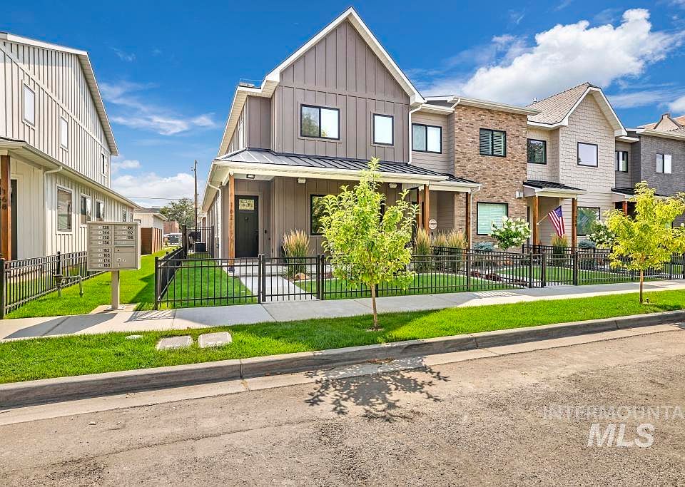 Discover urban elegance in this stunning townhouse in downtown Twin Falls, blending classic charm with a contemporary-industrial style. This versatile home spans 2,385 with a dual living space option. This open concept home includes 3 bedrooms and 3.5 bathrooms, the kitchen is complemented by granite countertops, built in double ovens, a walk in pantry and high-tech appliances. The master on the main level provides ease and comfort with a jetted tub and walk out patio. Leading upstairs you will find an additional kitchenette area as well as a washer and dryer, making it a great option for short term rentals. With picturesque views of the City Park, this property is more than just a home; it's a lifestyle defined by convenience, luxury, and modern living. Additional features include custom wood detail and cabinetry, dual work space, surround sound, automatic blinds and detached 2 car garage with finished hobby room. This home offers an assumable VA loan option with qualified buyer.