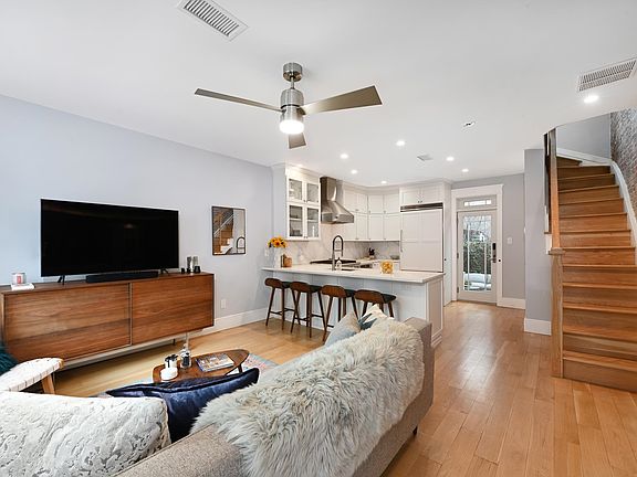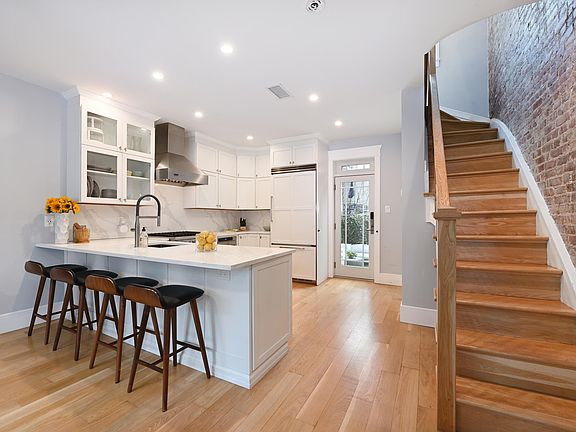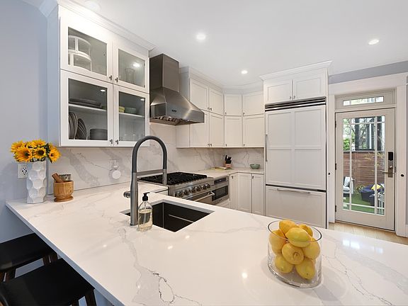 Welcome to this beautifully renovated single family home in an amazing location. Every detail has been thoughtfully designed and executed with impeccable taste, blending the charming appeal of exposed brick with modern updates. Enter through the Italian tile entryway and be struck by the open and inviting floor plan of the living room, dining room, and kitchen. The chef’s kitchen features solid wood soft-closing cabinets, Caesarstone countertops and backsplash, Viking appliances, and countertop seating. The first floor also includes a half bath. Throughout the home, you can find Roman blackout curtains, Grohe fixtures, Franke sinks, and Robern vanities. On the second floor, you will find two bedrooms, a stylish bathroom with calcutta marble, full-size side-by-side washer and dryer, and storage. The third floor boasts a large primary suite complete with a walk-in closet and a beautiful bathroom. The lower level of the home offers a versatile space, including a small kitchen, full bath, and storage, which can be used as a family room, home office, or in-law suite. The updates to the house, including solid wood doors, radiant heat floors, new windows, on-demand hot water, and spray foam insulation for noise reduction, make this home both comfortable and energy-efficient. Step outside to the Hufnagel landscaped yard, featuring a bluestone patio, built-in Lynx grill, and no maintenance turf perfect for entertaining or simply enjoying the outdoors. All this with low taxes and outside of the flood zone could be yours!