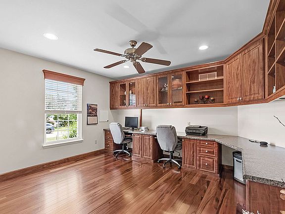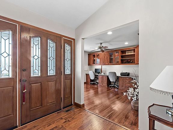 Welcome home to this stunning 3 Bed/ 2 Bath ranch in a quiet neighborhood with direct access to the Katy Trail and minutes away from Hwy 364, schools & shopping. Upon entering the foyer, you'll notice beautiful brazilian hardwood floors and maintenance free designer vinyl flooring throughout the main level. A custom office with three built-in workstations meets today’s virtual needs. In the vaulted ceiling family room you’ll be greeted by a gorgeous mantel framing a maintenance free gas fireplace and an open floor plan leading to the upgraded kitchen with large quartz island, 2 sinks, granite counters and tile backsplash, gas Wolf cooktop and pantry. Both the eat-in kitchen and the family room lead to a screened porch where you have access to 2 patios and a natural gas grill. Separate dining for formal occasions. Main floor laundry with sink and custom cabinetry. Master bedroom includes a bay window and custom walk-in closet. A renovated master bath is spa-inspired with jetted tub, dual sinks and separate shower. Stained wood doors and trim throughout. Second bedroom has built in shelving with drawers and custom closet. Take a look at the partially finished basement with tons of space for recreation and includes both a cedar walk-in closet and a walk-in storage closet. The unfinished-section of the basement doesn’t disappoint with plenty of built in shelves for storage, a workshop area and convenient walkup to the spacious 3-car garage. Large, flat lot has built in 9-zone sprinkler system and attractive landscaping. Central-vac.