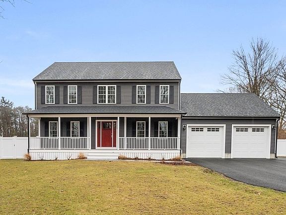 This beautiful new home is ready for you to move right in and enjoy all it has to offer. Stately Colonial in a desirable location situated on a private lot. Farmer's porch plus rear deck. Kitchen with quartz counters, stainless appliances, recessed lighting, large island, and dining area with sliders to deck. Hardwood floors throughout. Ceiling fans in many rooms. Double sink vanities in both full bathrooms. Large rooms throughout with great closet space. Garage has a row of cabinets installed for added storage. Large new shed just built. Driveway has extra width and extra parking added next to the garage.