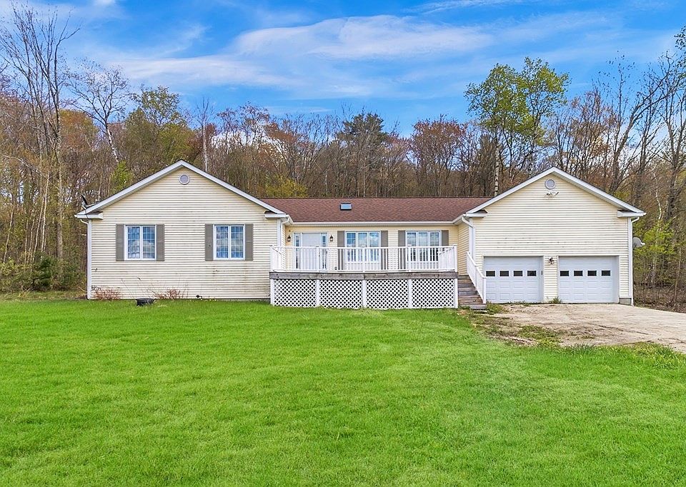 Enjoy your early morning coffee, or an evening glass of wine watching the sunset from the front deck of this well maintained 3729 sf ranch. w/ 186,655 SqFt lot. First floor boasts a kitchen with breakfast island, that overlooks a spacious living room. The French doors off the kitchen open to formal dining room or den. The central hallway leads to two additional bedrooms, a shared bathroom and a master bedroom with a walk-in closet sink and toilet and walk-in shower. 1/2 bath/laundry room completes the first floor. Half of the basement is finished into a game room/den and is plumbed for a new bathroom. The property is located on the top of 4 1/2 acres in a beautiful pastoral country setting minutes from Jiminy Peak, is an easy commute to Lee/ Lenox and Pittsfield to the south and Williamstown, North Adams/Adams to the north or Albany 45 min to the West.