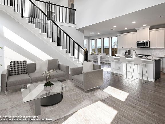 MOVE-IN READY! Step through the front entrance and you'll find a spacious entryway adorned with three large windows allowing natural light to illuminate the space. Located right off the front entrance is the utility room. As you proceed into the family room, you'll be captivated by the 19-foot ceilings. The corner kitchen features an island with built-in seating and a walk-in pantry. The adjacent dining area is bathed in natural light from the corner wall of windows. Enter the private primary suite, where a wall of windows welcomes you filling the room with natural light. French doors lead you to the primary bath, which offers dual vanities, a spacious glass-enclosed shower, and two oversized walk-in closets. On the second floor, you'll discover an open game room. The secondary bedrooms feature walk-in closets, separate linen closets, and share a full bathroom. A private guest suite with a full bathroom completes the upstairs. Outside is an extended covered backyard patio. Completing the floor plan is a mud room located just off the two-car garage.