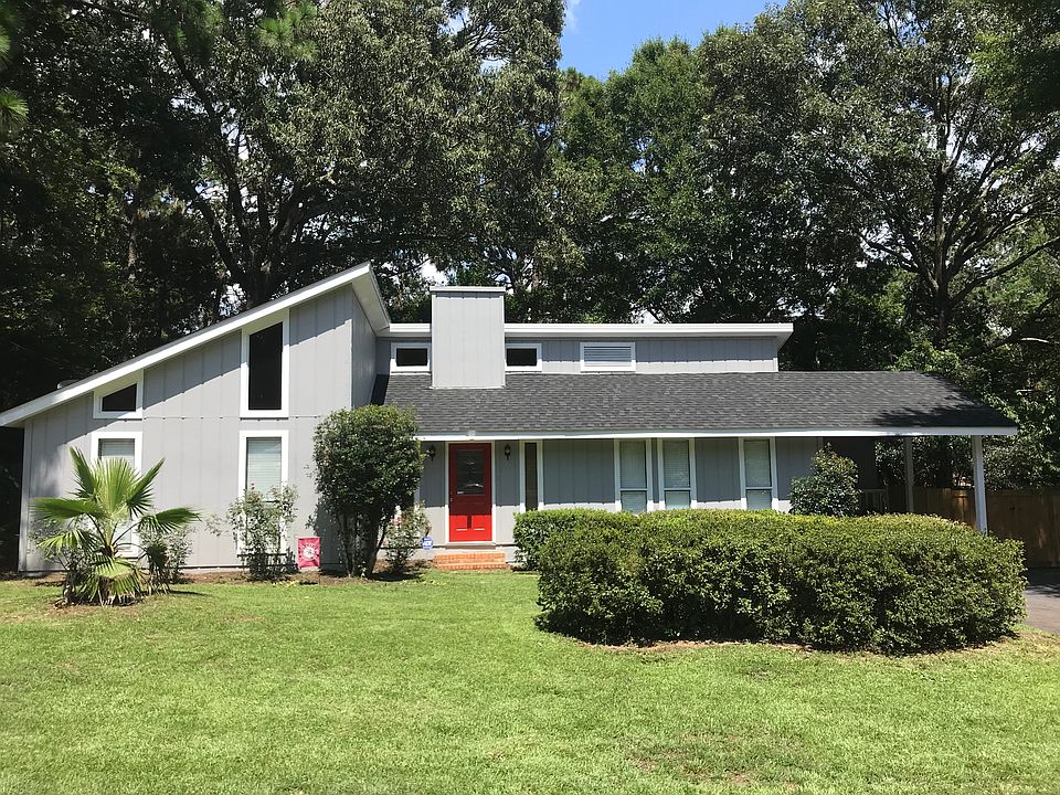 Open floor plan with high ceilings, tile and stained concrete throughout. Home includes 4 bedrooms, 2 baths, kitchen, dining, living room, and large family / entertainment room. Newly remodeled with new light fixtures, ceiling fans, countertops, cabinets, and hardware throughout. New (2018) Trane 16 Seer AC with 5 year parts and labor warranty and WiFi thermostat. New (2018) bronze certified architectual shingle roof. Spacious rooms, deck and patio for entertaining, with nice shaded & fenced back yard. Carport and also lots of outdoor storage as well.