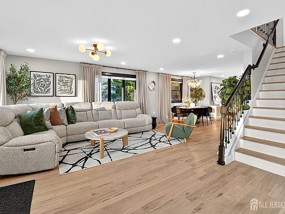 Welcome to this stunning Colonial, fully upgraded in 2022 w/modern finishes & timeless design. Featuring 4 bedrooms, 4 full bathrooms, & a beautifully finished basement, this home combines style, comfort, & functionality. The main level boasts an open-concept floor plan w/ luxury vinyl (LTV) floors & recessed lighting throughout. The spacious living room flows into the dining area & a chef's kitchen complete w/ center island, breakfast bar, & pull-out microwave drawer. The kitchen also features 42-inch shaker cabinets w/ crown molding, a subway tile backsplash, an undermount sink w/ gold hardware, & premium SS appliances including a French-door refrigerator, 5-burner gas stove w/ overhead vent fan, built-in microwave drawer on center island, & dishwasher. Sliding doors open to a deck, perfect for seamless indoor-outdoor entertaining. A full bath w/ tiled stall shower completes the first floor. Upstairs, you'll find 4 generously sized bedrooms & 2 full bathrooms, including a primary suite w/ a spa-like bath finished in custom tile. The finished basement offers an expansive recreation space, a full bathroom w/ a shower stall, & a laundry room w/ custom shelving. The fully fenced backyard is an outdoor oasis featuring a deck, paver walkways, & an in-ground pool w/ a waterfall & diving board, perfect for entertaining or relaxing in style. Dual Zone HVAC, beautiful lighting throughout. With upgrades throughout & thoughtful attention to detail, this move-in ready Colonial is the total package. Close to NYC Bus, trains, shopping, restaurants & all major roadways, 287, 1&9, GSP, NJTPK.