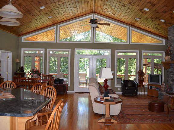 Wonderful lake view 3264 sq ft - 6 bedroom home with 4 full baths in a nice secluded area of Deerfield Resort. Enter into a great room-includes living room with fireplace, dining area, kitchen, 2 master suites and large walk out deck. Two car detached garage is on main level. Lower level has a large family room, 4 bedrooms, two baths and walk out deck.