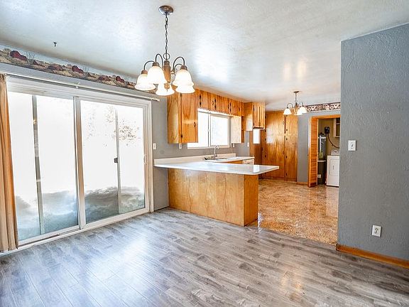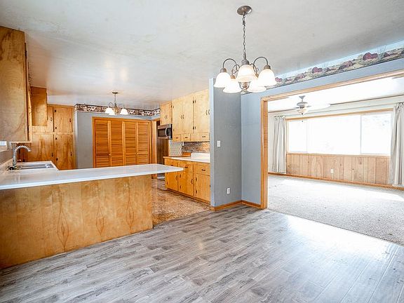 Come take a look at this 3 bedroom, 2 bath home w/almost 1500 SF of livable space!!! This Kitchen is open & spacious and equipped with gas stove hook-up w/ stainless Steel microwave, tons of cabinet space & counter top bar w/room for stool seating. Living room features ceiling fan w/light, a large window that lets in the natural light, two heat sources- a Blaze King Woodstove & the coveted brick wall fireplace to keep you warm on those cold nights. There is a large laundry closet with Bifold Doors & shelving, Dining room has updated flooring, expansive sliding glass door that leads out back to a concrete patio area. Outside, there is a 2 car attached garage, fully fenced back yard, 2 storage sheds. Located within 10 minute drive to stores, school and dining...The carpet in the bedrooms has been removed since these pictures were taken.