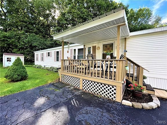 Located in popular Strawberry Hills. Well maintained home with updates to include roof new in 2019, furnace new in 2018, hot water tank new in 2017 & bath updates in 2019. Also features central air, large covered deck, yard extends to woods making the back yard area private & the shed is included. Park approval required. Lot rent includes trash pickup.