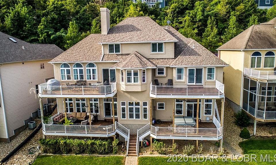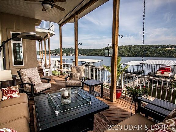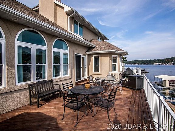 Price just reduced!!!! on this magnificent waterfront home here at #Lake of the Ozarks! I can talk all day about the sheer beauty that surrounds this lake front property, but you seriously need to take a look at it for yourself. Very quaint neighborhood at the end of a cul de sac. Giant views of the main channel, and 4 decks to view it from. Minutes from town and easy access to Hwy 5. The boat, hoist and two jet skies will be available to purchase separately directly thru the owner. The furnishings are also available for purchase away from the sale of the home. Security system and surround sound system will come with the property. There's also an underground pet containment system in the back yard. Rip Rap upgrades have been arranged at the owner's expense.