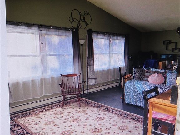 Privacy galore!  This 3 BR home is at the end of a long private road that opens up to a large field to the left and the home is on a rise that overlooks a 3 plus acre lot!The living room has 2 huge picture windows, a cathedral ceiling and FP........the kitchen has a dining area and a door with access to the spacious backyard.   There are 3 BRs all with hardwood flooring.......a full BA with tub and shower.  This home has a huge basement for storage!   New windows in 2021, New septic tank 12 yrs ago.  Refrigerator, W/D are 8 yrs old.  The yard has an official size horse-shoe pit along with a fire pit.  Some work is needed, but with a little sweat equity you can have an amazing home.