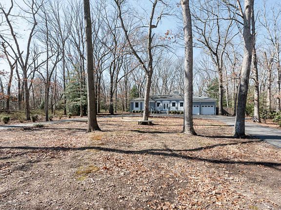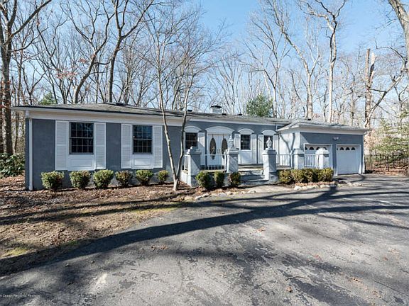 DRASTICALLY REDUCED! RELOCATED SELLERS! Top quality sprawling ranch on a beautiful wooded street. This 3 bedroom stucco home is loaded with custom detail. Renovated bathrooms, kitchen with custom cabinetry filled with extras, breakfast bar and center island. The great room has cathedral ceilings, a wood burning fireplace, built in wet bar and sliders to deck. The adjoining spa room is surrounded by windows and has a sunken hot tub for year round enjoyment in privacy. The huge finished basement w/fireplace will nearly double your square footage. Located in a serene private setting, yet convenient to shopping makes this custom home a perfect 10!