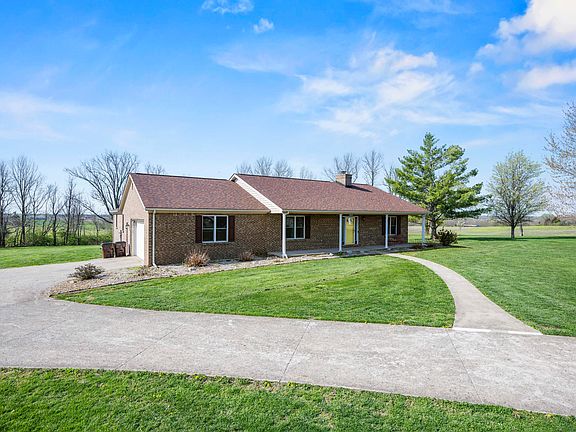 Kentucky Dream Property Priced Under $400K!!! Lovely, updated 3 Bedroom, 2.5 Bath brick ranch home on a 1.64 acre lot with amazing views of a farm, located in desirable Salvisa Heights only 6 minutes from the Bluegrass Pkwy. Updates include: newer roof and chimney cap (2023), HVAC (2021), new french drain in backyard, septic updated with new filter section, distribution box, plants and gravel to bed, newer carpet and sliding door in primary bedroom, new vanity top in primary bath, newer lighting and ceiling fans, and new paint. Home features a living room with wood stove, a formal dining room, beautiful kitchen with plenty of cabinets, a spacious primary bedroom suite with tub, shower, double vanities and 2 walk in closets. Washer and dryer included. Enjoy outdoor living on your weather proof Trex back deck, or under your large front porch. Use the large Amish built shed as a workshop or kids playhouse, and enjoy the covered Gazebo that has electric and water run to it. Property is at the back of a cul-de-sac for peaceful privacy. Come see this very special property today before it's gone!
