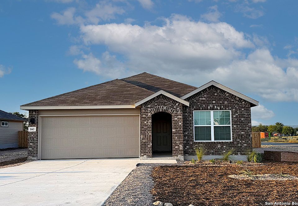 Welcome to The Knight, our largest single-story home offered at High Garden in Comfort, TX. Featuring 3 classic front exterior, 4 bedrooms, 2 bathrooms, 2-car garage and 1901 square feet of living space, this floor plan is sure to turn heads. Spacious, comfortable living greets you at the door with a long foyer leading to a decorative wall nook and a grand, open concept living room, kitchen and dining area. The kitchen is complete with beautiful quartz countertops, stainless steel appliances, classic white subway tile backsplash, and an oversized kitchen island with a deep single basin sink. Your blended living room and dining area feature luxury hard surface flooring and plenty of windows, creating a light and bright space for living and entertaining. The private main bedroom is located at the back of the home and features a large, relaxing ensuite bathroom complete with a separate tub and walk-in shower, dual vanities, a water closet, and spacious walk-in closet. All secondary bedrooms offer quality carpeted floors and a closet. These rooms are versatile! Use them as bedrooms, offices, work out rooms or other bonus spaces. Additional features include tall 9-foot ceilings, 2-inch faux wood blinds throughout the home, ceramic tile in the bathrooms and utility room, and pre-plumb for water softener loop. You'll enjoy added security in your new home with our Home is Connected features. Using one central hub that talks to all the devices in your home, you can control the lights, thermostat and locks, all from your cellular device.