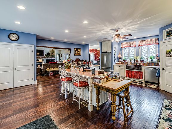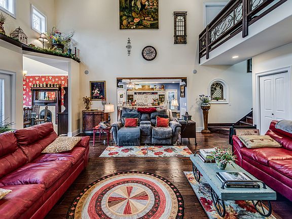 FOR THE DISCERNING BUYER! Architect's own home Located on 43.5 acres with 5 acres of fenced pasture and 38 acres of woods that sits to allow views from every room of the roaring river that runs the south length of property. The long winding drive affords the serenity you'll feel heading home as you pass the deer meandering the property while you approach a home like no other. Every detail in the construction of this home was overseen by the designer/owner. From the hand cut limestone and brick to the antique leaded glass windows. This European beauty has many unique features that add a warmth of hearth and heart. 3 fireplaces, imported handmade Portuguese tile in the kitchen, copper sink, imported farmers sink from Mexico, a German shrunk from 1938 as well as the huge 200 year old arched leaded cypress window in the Master from a Louisiana mansion. Flooring is 6+â-ó+éGé¼+é-¥ hand carved dark oak boards, Travertine tile. Many possibilities with the Private versatile 400 sq ft suite.