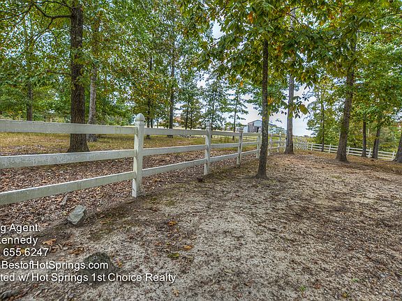 Just west of Hot Springs, this majestic 9-acre equestrian estate rests at the end of a beautiful country road, offering serenity and peace and includes a quality 3479 sf home plus a 832 sf guest house, barn, stocked pond and fenced pastures. Imagine relaxing on the rocking chair front porch of the guest house watching the grandkids fishing in the stocked pond or lounging by the pool overlooking the panoramic view of rolling hills and woodland. Beautiful sunrises and sunsets, kissed with gentle breezes that greet you daily to start and end your day. This classy custom-built home is designed so that you enjoy the beauty of nature that surrounds you, from every room. Neutral colors, cathedral ceilings, walls of glass with eyebrow windows, tile and carpeted flooring add to this inviting living and entertaining "peace of heaven". The home has four executive-size bedrooms with large closets plus a spacious bonus room that could be used as a 5th bedroom, and three full bathrooms and one half bath. The very large master bedroom suite is on the main floor with a door leading outside to the deck and pool. It features a luxurious master bath with his and hers walk-in closets and a garden tub and separate shower. The beautiful sky-lighted open staircase leads upstairs to the other bedrooms and bonus room and overlooks the family area, creating a light, airy and grand feel. The large bedrooms have tall windows with eyebrow windows above offering beautiful property views. The main level features an elegant grand entry with tile inlay flooring, cathedral ceilings, grand chandelier and opens to a formal dining room on one side and an open office or sitting room on the other side. The grand-size living room is lined with walls of glass with eyebrow windows overlooking the pool and there's a brick inset ready for an electric fireplace insert. Its spacious kitchen is designed for people who like to cook as it is surrounded with plenty of counters and cabinetry and offers a nice-sized granite work station complete with a prep sink. The home is rounded out with a side loading double car garage and offers plenty of storage. The separate guest house offers complete living with a full kitchen, family room, bedroom, and bathroom with washer and dryer hook-up. There is a storage barn with livestock stalls, electricity and parking for the RV. Whether it's just two of you, or a family needing room to roam, and just want private peace and quiet - this property is worth your time to look. You and your guests will certainly enjoy every day!