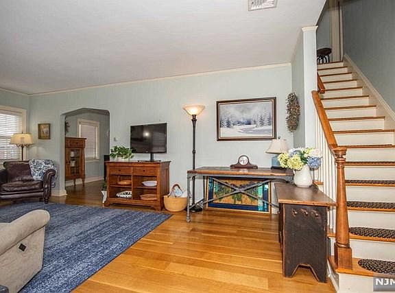Charming three bedroom Dutch Colonial with fireplace! This solid home feature numerous custom-made embellishments to enhance its beauty. Each window and room has elaborate moldings from an earlier time period. It's clear this home has been well loved. Good size living room opens to formal dining room and country kitchen. Upstairs three good size bedrooms with ample closet space and charming built-in bookshelves. Convenient walk up attic boasting Brazilian cherry wood floor! A generous 132 foot deep backyard ideal for outdoor activities and gardening. One car garage with five car driveway. Gorgeous random-width white oak floors on the main floor and third bedroom. New luxury vinyl flooring in finished basement a great place for exercise or games. An open front porch and central air conditioning make the home comfortable in summertime. Location provides easy access to schools, retail, restaurants as well as commute to NYC.