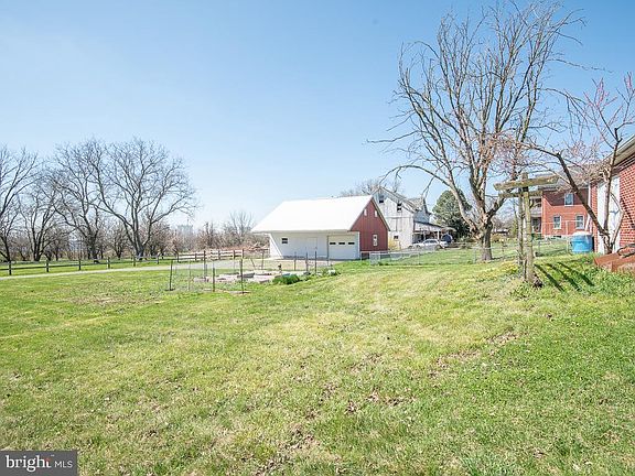 1 1/2 story solid all brick Cape Cod with eat in kitchen, spacious living room, 3 bedrooms, full bath, gas heat. Oak kitchen cabinets and pantry, replacement windows, low maintenance, move-in condition. Natural gas is installed. 2 story barn with 2 horse stalls, 12x28 garage. Lane access to Farmland Road.