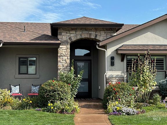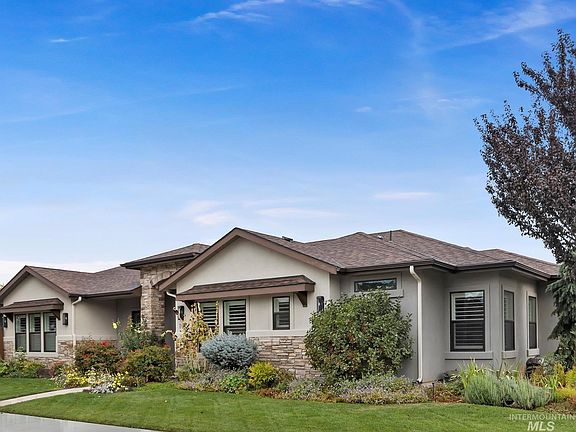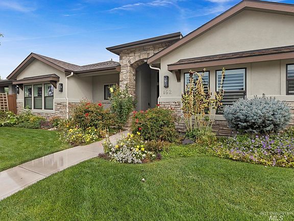 Welcome to your dream home on a private & spacious corner lot, offering ample natural light, southern exposure, and luxurious features throughout! Step inside to lovely crown molding, a vaulted entry ceiling, and an open entertainment-style layout, seamlessly connecting the sunny dining room, living room with cozy gas fireplace, & designer kitchen w/ large island, upper cabinets w/ smoked glass & backlighting, & a large pantry. Relax in the tranquil primary retreat, thoughtfully positioned away from the guest bedrooms for added peace. Peaceful backyard oasis with 2 raised garden beds + irrigation, a peach tree, blackberry bushes, & vibrant flower beds full of perennials. The HOA handles all lawn care, giving you ample time to relax on the covered back patio or enjoy outdoor hobbies. Large 3-car garage, with additional room for all your toys or a workshop! Nestled in a friendly, quiet neighborhood with easy access to shops, dining, schools, & commuter routes, this property is a rare find... Welcome Home!